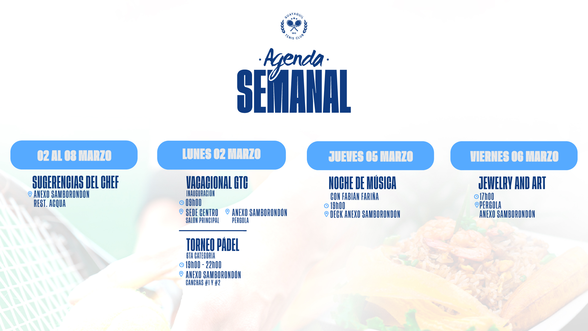 GUAYAQUIL TENIS CLUB, propietaria del sitio web y aplicación móvil, informa sobre los términos y condiciones de https://guayaquiltenisclub.ec, que serán de aplicación al acceso y uso por parte del usuario de este sitio web y aplicación móvil.